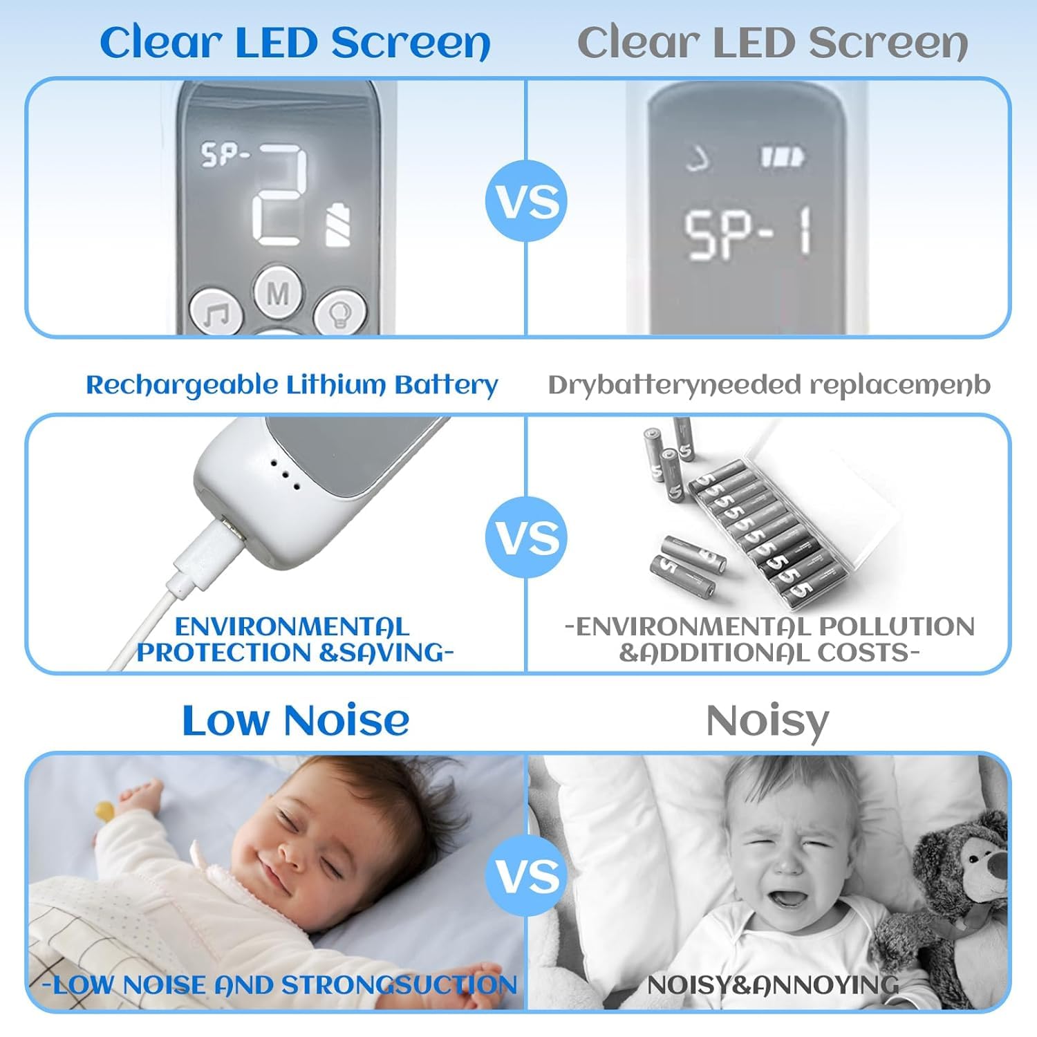 No batteries needed — USB rechargeable with long battery life makes it perfect for home, travel, or on-the-go use. Compact enough to fit in your diaper bag.